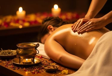 Abhyanga is a traditional Ayurvedic full-body massage using warm, herb-infused oils tailored to your body type. This deeply relaxing therapy nourishes the skin, improves circulation, and helps release muscle tension while calming the nervous system.